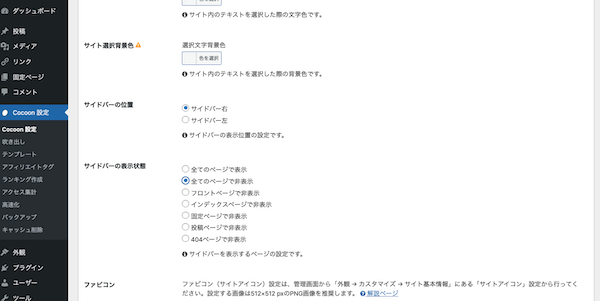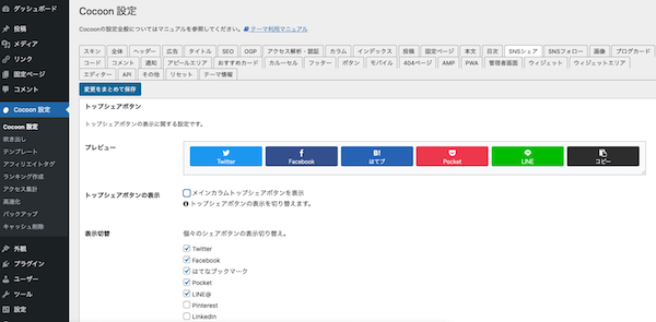 Cocoon設定から、SNSシェア。